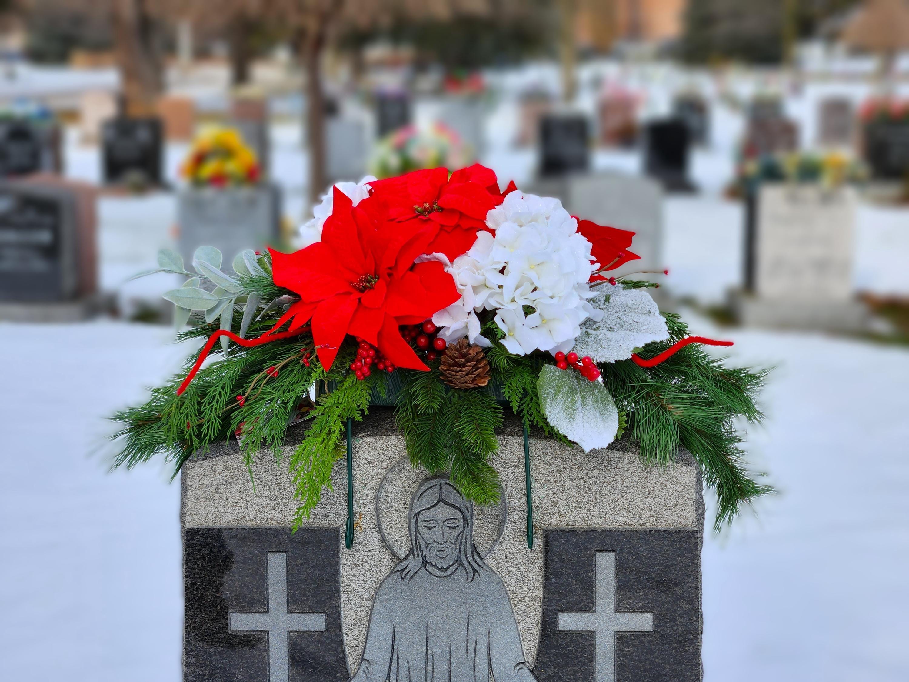 Winter Floral Arrangement with Red Magnolias and White Hydrangeas
